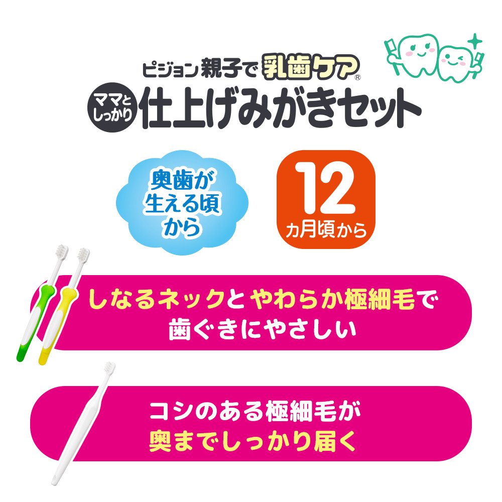 ● It is a set of infant brush and finishing brush that you can use from about 12 months (when back teeth grow).
