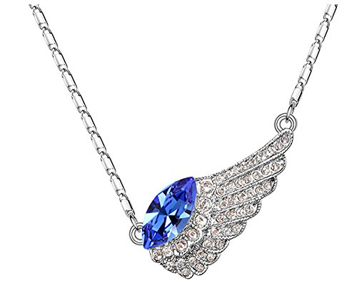 -. Title : Sojewe Silver tone Angel Wing Pendant Necklace Navy Blue Teardrop Swarovski Elements Crystal 18" Chain for Women