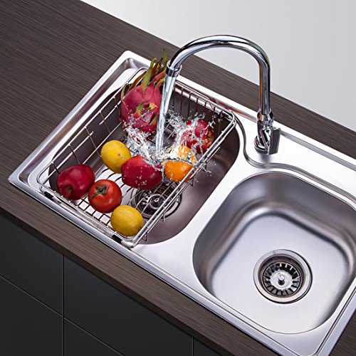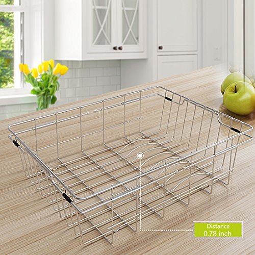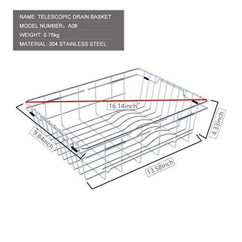 YOMYM Adjustable Over Sink Dish Drying Kitchen Rack Dish Holder Utensil Drainer Rack Stainless Steel 18-8