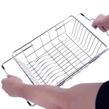 - Fits well in the sink or counter with adjustable bars.It has a large capacity, nevertheless, it is not bigger than a microwave door. Well gain spaces for small kitchens.