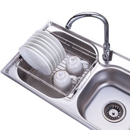 - Dish drying rack is made of food grade 304 stainless steel for an anti-wear, anti-corrosion and ecological experience. The rubber-coated feet are implemented for slip resistance in the sink.