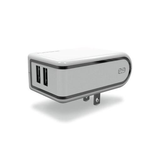-. Feature : The Dual USB Wall Charger conveniently charges two handset, 1 handset and 1 tablet , or two tablets. / Rubberized Plastic