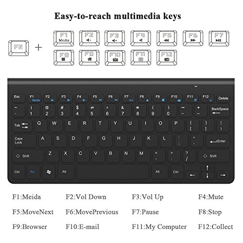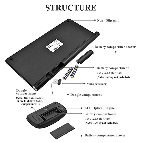 NOTE: This isn't a FULL-SIZED KEYBOARD, the wireless receiver is stored in the receiver slot at the bottom of the keyboard; Batteries required but NOT included. Our products support 1 year worry-free warranty