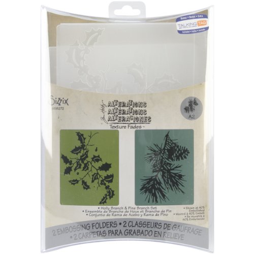 Sizzix Texture Fades Embossing Folders 2PK - Holly Branch & Pine Branch Set by Tim Holtz
