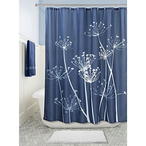 mDesign Thistle Fabric Shower Curtain - 72 x 72-Inch, Navy/Slate Blue