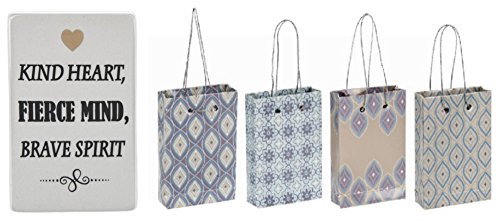 "Kind Heart, Fierce Mind, Brave Spirit" Mini Message Plaque and Beautiful Thoughts Mini Gift Bag Set
