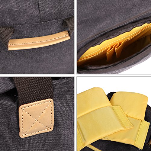 Material: High Density Waterproof Canvas with PU Leather Trim, strong stitching, durable zipper, quick snap buckle