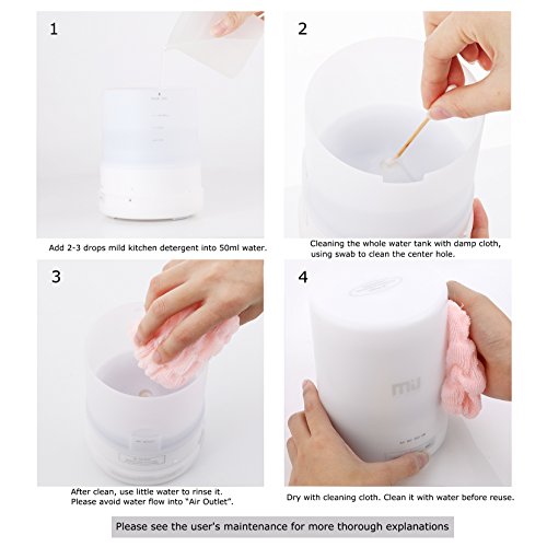 Large Mist: Using high quality ultrasonic atomizing sheet. It can create a lovely mist that helps to humidify the air. For those who desire only a small amount of oil to be diffused in a room, this type of diffuser not only works well but can be very beautiful as well.