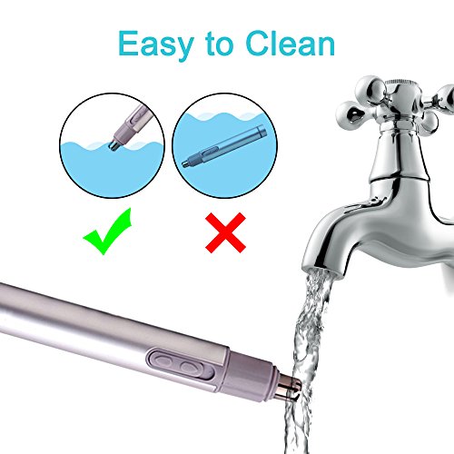 EASY TO USE & CLEAN: The ergonomic shape makes it easy to trim unwanted hair precisely allows you to use this nose trimmer in the shower and makes for an easy rinse off for long lasting performance simply wash the trimmer under the sink after use.
