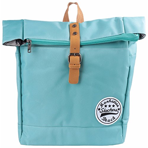 Product Description Unisex backpack. Zipper and magnetic closure for main compartment. Inside computer tablet pocket. Front open pocket. Inside hanging zipper pocket. Adjustable shoulder straps. Skechers signature embroidery logo patch. Plastic buckle with S logo. Fabric: Microfiber with polycotton lining. Dimensions: 14.9in x 15.7in x 5.1in. 0