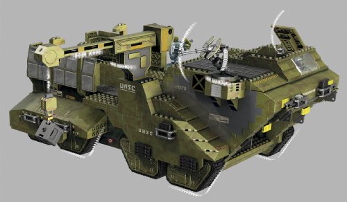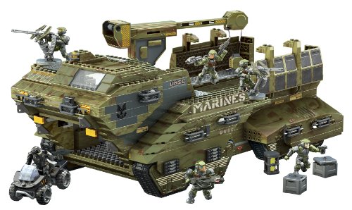-. Feature : Buildable UNSC Elephant / Working repair crane and manual deployment ramp / 3 LAAV Machine Guns / Includes new Black Recon Armor Spartan micro action figures and 6 Marines / Includes buildable UNSC Mongoose