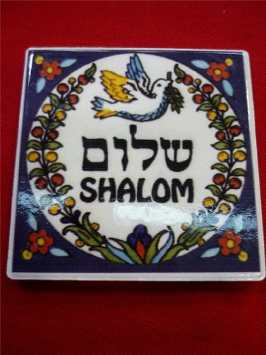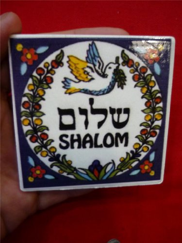 Shalom Hebrew Peace Display Ceramic Fridge Magnet 3" Armenian Design Israel