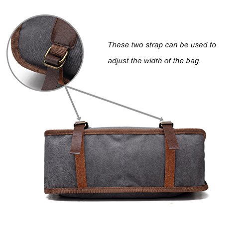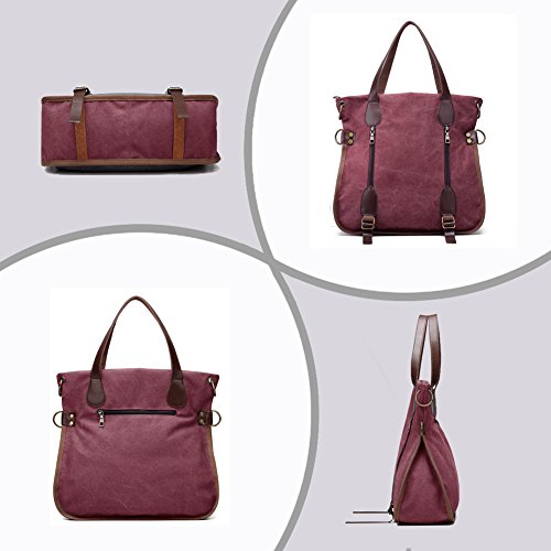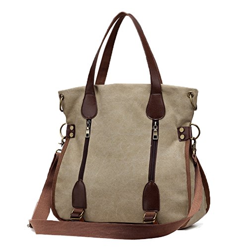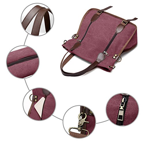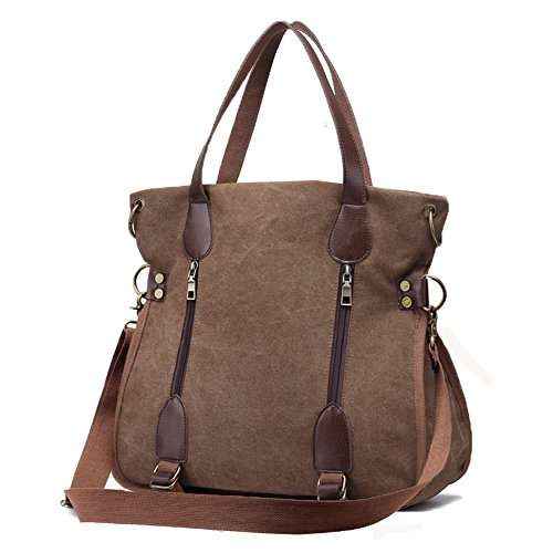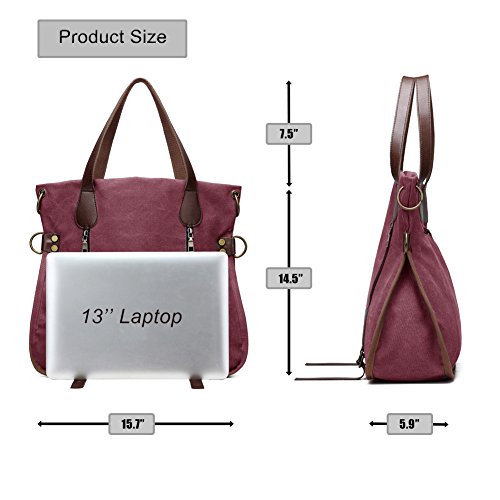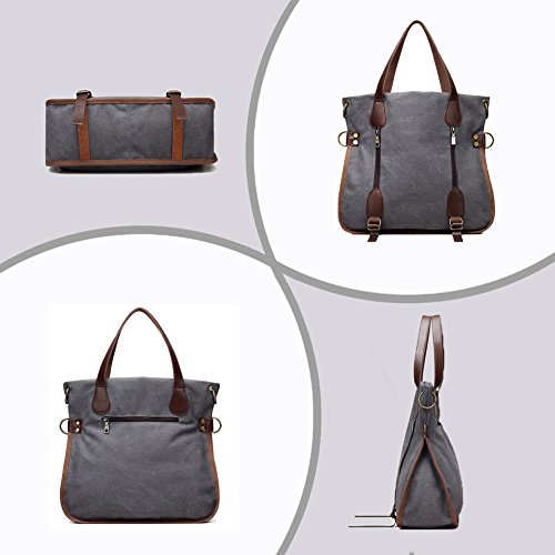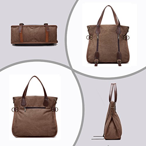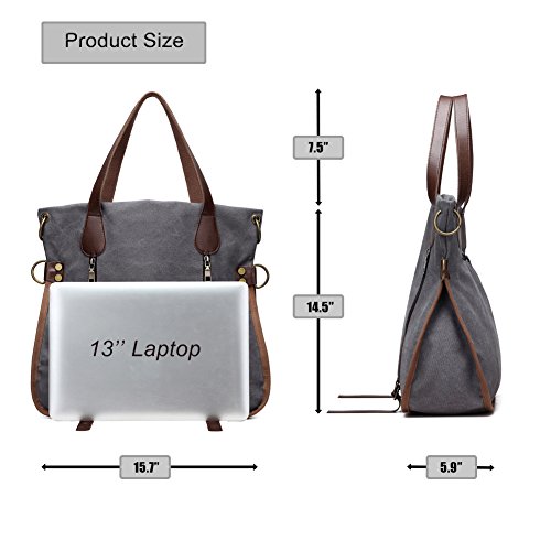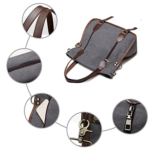 Product Description LOSMILE Women Shoulder Bag: LOSMILE aims to make comfortable and functional bags. In order to give our customer a perfect shopping experience, LOSMILE chooses high quality thick canvas fabric, soft polyester lining and exquisite accessories to make bags. There are 2 coppery circle on each side of the shoulder bag. You can make this bag a cross body bag or a messenger bag by elect different pair of the circles. This special design gives you more choice when you pack the bag out. The chic and elegant handbag is easy to match for daily clothes and also an ideal gift for your friend and girlfriend! Features: Size: 15.7inch(L)x5.9inch(W)x14.5inch(H). Handle Drop Length: 7.5inch. Shoulder Strap:49.2inch-25.6inch. Weight:1.6lb Closure: Top Zipper Closure. Material: Decorative retro bronze metal hardware. PU Leather strap. Durable soft canvas, polyester lining.. Occasion: Dating, Working Place, Shopping, Traveling, Business, Meeting, etc. Structure: 1 Main Compartment for A4 folder, 13inch laptop, umbrella, binder, kindle and other essentials. 2 Front Zipper Pockets 1 Back Zipper Pocket for cell phone, transportation card, Small change, etc. 1 Interior Zipper Pocket for wallet and passport and so on. 2 Interior Open Pockets for other small things. All stuff can be well organized inside.