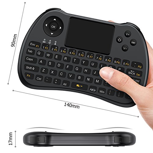 The Aerb A9 wireless keyboard is the ultimate smart solution for you to type and control remotely at home or office! It features a mini QWERTY keyboard and a touchpad, which could be used to replace your traditional USB keyboard and mouse. It is a convenient alternative wireless keyboard and mouse combo for your home or office use. Attention: 1. Keyboard will go into sleep mode after 3 minutes of non-use to conserve battery power. 2. Windows 7 OS will take several minutes to install the driver (USB receiver included) 3. This version does not include a laser pointer or a backlight keyboard 4. The Li-ion battery and tiny USB adapter are stored and accessible in a compartment on the back 5. The Power Light will turn off once the keyboard is fully charged. 6. Depending on the OS you are using, you may need to re-sync the keyboard and dongle if the keyboard doesn't connect after 5 minutes. Computer system compatibility: Windows 2000 Windows XP Windows Vista, Windows CE, Windows 7 Linux(Debian-3.1,Redhat-9.0 Ubuntu-8.10 Fedora7.0 tested) Android 4.0+ systemFeature