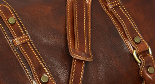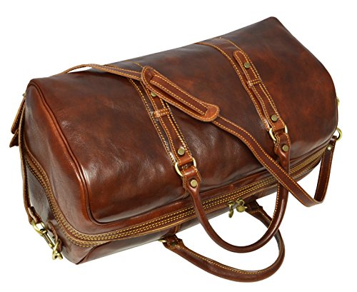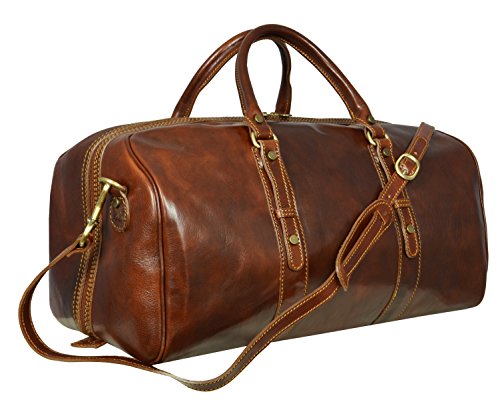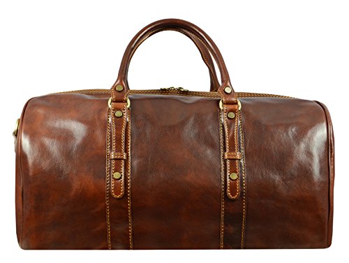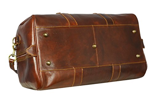 -. Brand : Time Resistance -. Color : Brown -. Department : unisex-adult -. Feature : DESIGN - Julius Caesar is a genuine leather travel bag for a rock star - a leader so charismatic that he often seems to affect the outcome of events he isn't even part of. With ambition for greatness and the potential to reach it he is what they call "a threat". Haters would hate, but this one is able to charm the pants off anyone. Complemented by authenticity. / LAPTOP SIZE • Enough room to comfortably fit a laptop. GADGET FRIENDLY • Pocket to keep your tablet separately from everything else (the stuff that scratches). FOR YOUR CARRYING COMFORT • Two carry handles for easy carrying in hand. • Detachable shoulder strap, adjustable in length. TO STAY ORGANIZED • One spacious compartment and an inside pocket with a zipper. • Floor-to-floor double zipper opening for convenient access / MATERIALS • Exterior made from genuine top grain calfskin that will last you for decades. • Interior lined, inside pocket lined with cotton. • We are well aware that men don't look forward to getting re-accustomed to a new bag. Therefore we make sure to offer quality materials that will last long and require little maintenance. It will be a good while before you feel any need to look for another bag. / TAN • Hand dyed using vegetable tanning method, which utilizes only natural materials and doesn't contain harmful chemicals. • This artisan technique maintains the natural look of leather, rendering each skin one of a kind with a slightly different pattern. • As an added bonus, vegetable tanning gives it a natural earthy smell. / BETTER SAFE THAN SORRY • Reliable brass hardware. • Metal studs protect the bottom so you can put it on the ground without worry BE A KEEPER • Comes with a dust bag that is to be used when the bag is stored. • Dust bag protects it from the sun, dust, scratches or stains while also allowing the leather to breathe. • Made from 100% cotton. DIMENSIONS: Height: 9.4 in (24 cm) Length: 19.3 in (49 cm) Width: 11.8 in (30 cm) Shoulder drop length: 15.7 - 18.9 in (40 - 48 cm) Weight: 3lb 15oz (1.8 kg) -. Model : 1183601 -. ProductGroup : Apparel -. ProductTypeName : LAGE -. Size : Medium -. Title : Leather Travel Bag, Leather Duffel Bag, Weekender Bag Brown - Time Resistance