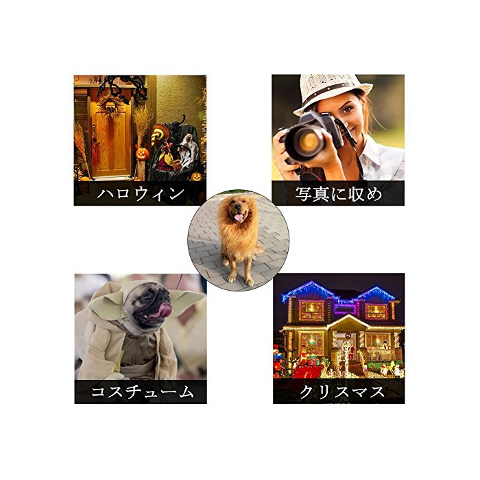 【설치 간단】간단하게 부착 가능해 라이온에 변신 할 수 있는 독특한 아이템입니다.우선 고무뉴를 앞으로,강아지의 처음부터 씌웁니다.그리고,수주위를 조정하고, 고무뉴를 상냥하게 끌고, 어긋나지 않는 정도로 조정하여 잇습니다.최후,강아지의 몸의 사이즈 에 맞추어,내측에 원단을 접어 입 봅니다.털을개 ## 수 있게 곤두설 수 있으면,라이온다움이 강조됩니다.