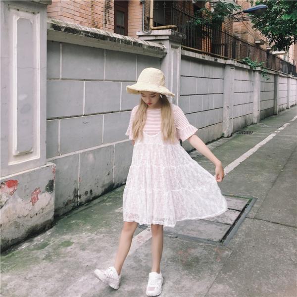 レディース ワンピース レース シフォン ボーダー 2点セット チュニック フリル キャミソール 半袖 膝丈 2017 新作 秋冬シンプルなボーダートップスにレースワンピでガーリー&カジュアルコーデ*上品な透け感にふんわりシルエットが可愛いアイテムです。Tシャツはフリル袖でボリューミーに、メリハリあるシルエットがポイント◎【カラー】ブラック・ピンク【サイズ】(ボーダーワンピ)丈75/胸囲82/肩幅35/袖丈22(レースワンピ)丈81/胸囲90(cm)※製品により多少の誤差が生じる場合がございます。【ご使用上の注意】着用に問題のない製法のほつれ、商品の性格上、開封された商品・一度でも着用されました商品の返品・交換は一切お受け致しません。イメージと違う、サイズが合わない等の理由での返品は一切受け付けておりません。購入後のサイズ交換は対応しておりません。生産終了後すぐ発送しているため匂いがある場合がございます。ご了承ください。【生産国】made in china※商品はご注文を頂いてから2週間前後の到着となります。