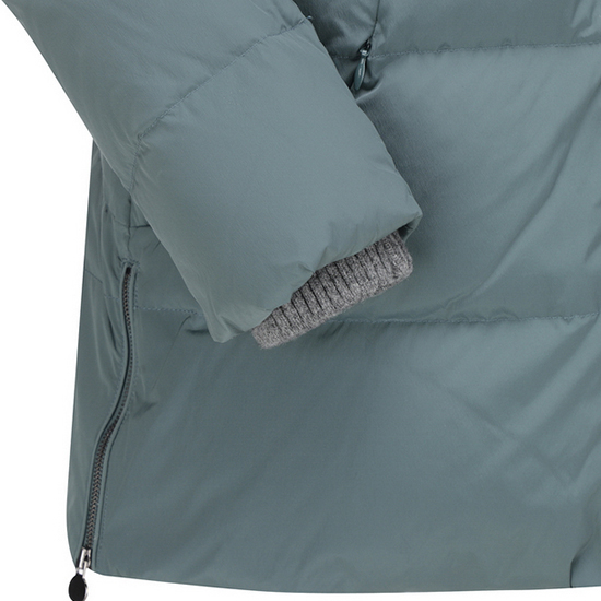 - 소매단 이면의 배색 니트 립조직으로 바람을 막아줌.