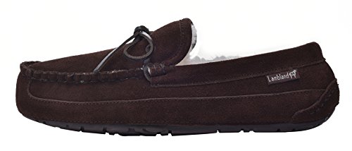 -. Binding : Apparel -. Brand : LAMBLAND -. Department : mens -. Feature : Lambland are renowned for quality sheepskin and leather / Hand stitched with the finest Australian Sheepskin / Hard wearing and durable rubber sole / Adjustable lace tie / Please Note: Our items ship from The United Kingdom -. Label : Lambland -. Manufacturer : Lambland -. ProductGroup : Shoes -. ProductTypeName : SHOES -. Publisher : Lambland -. Studio : Lambland -. Title : Lambland Mens Genuine Full Quality Sheepskin Moccasin Slippers with Hard Wearing Sole - Brown, Navy, Charcoal