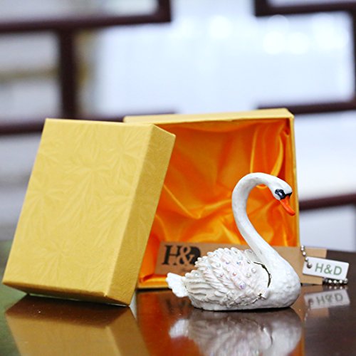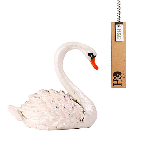 -. Binding : Kitchen -. Brand : H&D -. Color : Wedding Swan -. Feature : Graceful and elegant Animal figurine holder for rings and small jewelry by H&D / Total Handpainted and distressed for vintage appeal; finishes will vary somewhat / Made of metal and crystal from China,packed with gift box / Wonderful and creative animal design,Multi-function selections, suits your needs conveniently and perfectly. / Messure 2.9*3 inch -. IsAutographed : 0 -. Label : H&D -. Manufacturer : H&D -. MPN : AGS1600926 -. PackageQuantity : 1 -. PartNumber : AGS1600926 -. ProductGroup : Home -. ProductTypeName : HOME -. Publisher : H&D -. Studio : H&D -. Title : H&D Swan Figurines Trinket Box Jeweled Enameled Small Animal Figurine Collectible Ring Jewelry Holder (Wedding swan)