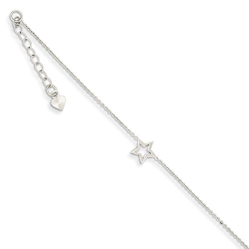 Roy Rose Jewelry 14K White Gold Adjustable Star Anklet ~ Length 9'' inches