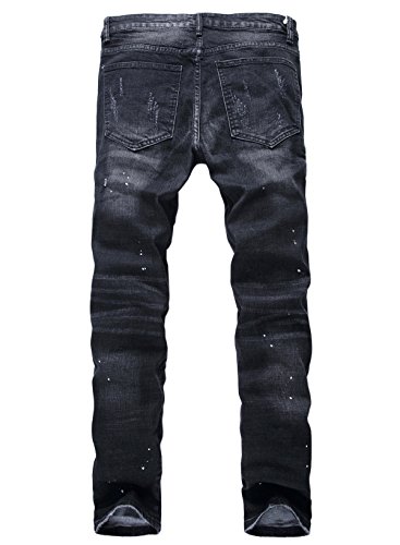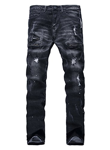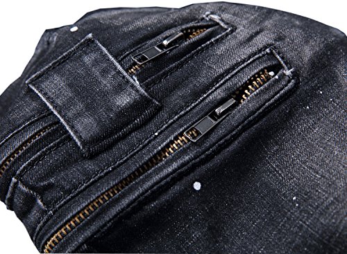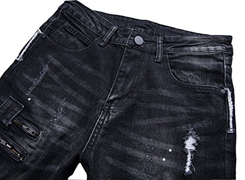 -. Title : Men's Black Stretch Jeans with Broken hole Zipper deco