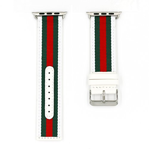 -. Feature : カラフルなストライプ模様のナイロンと本革を貼り合わせたお洒落なアップルウォッチ/Apple Watch用交換バンド / 38mm/42mmの両方のサイズをご用意。 / 2種類のストライプ模様とレザーの色違いの全3種類から選択可能 / Apple Watch +, Apple Watch Series 3、 Series 1、Series 2 の全てのアップルウォッチに対応。 / バンド交換用の精密ドライバー付属。※ドライバーの色や形状は予告なく変更する場合があります。