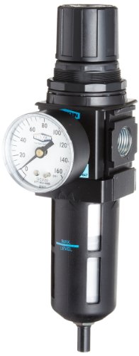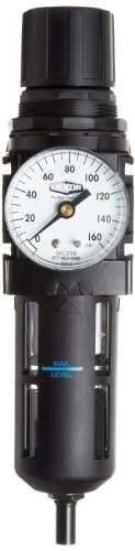 Dixon B18-04AG Automatic Drain Wilkerson Compact Filter/Regulator with Transparent Bowl and Guard, 1/2" Size, 121 SCFM Flow, 150 psig Pressure