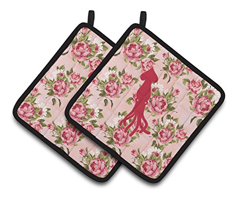 Caroline's Treasures BB1096-RS-PK-PTHD Squid Shabby Chic Pink Roses Pot Holders (1 Pair), 7.5" x 7.5", Multicolor