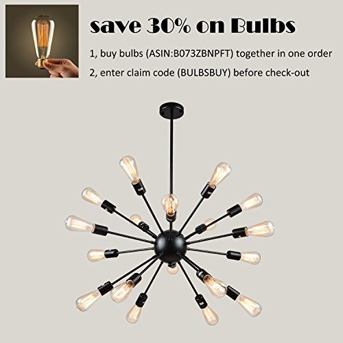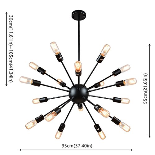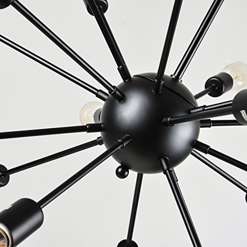 mirrea Vintage Metal Large Dimmable Sputnik Chandelier with 18 Lights, Black Painted