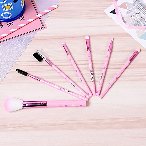 Makeup Brush 7pcs Set Cartoon Cute Pink Bunny Beauty Tools With Super Velvety Synthetic Hair Kabuki Foundation Blush Eyeshadow Liner Powder...