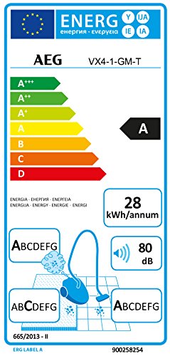AEG VX4-1-GM-T Staubsauger mit Beutel EEK A (750 Watt, inkl. Mini-Turboduse und Hartbodenduse, 7,5 m Aktionsradius, 3,5 Liter Staubbeutelvolumen, Hygiene Filter E12) grau