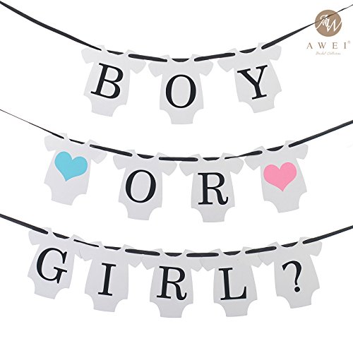-. Title : AWEI Boy or Girl Paper Banner in White, DIY Decoration for Wedding, Baby Shower and Party