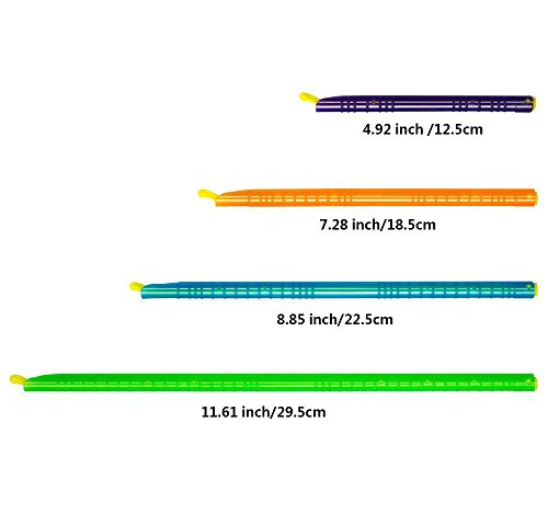 Material:Plastic;4 Sizes (Overall size):4.92inch/12.5cm,7.28inch/18.5cm,8.85inch/22.5cm,11.61inch/29.5cm;Set of 8,2 of each,4 different color.