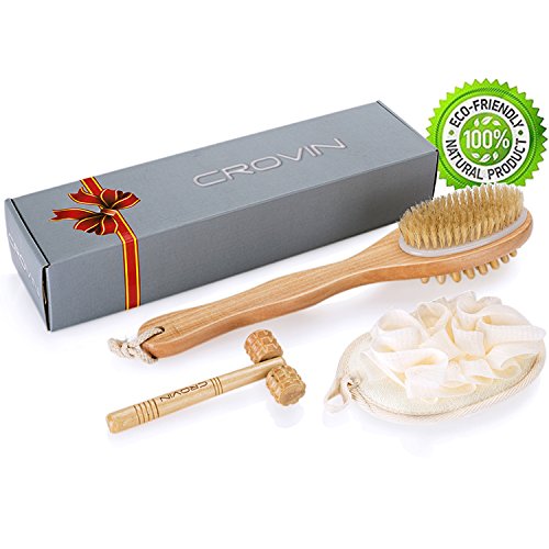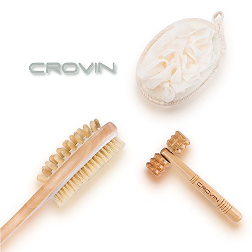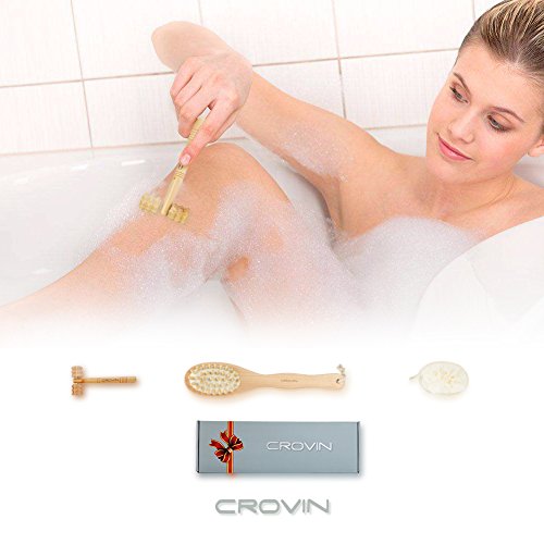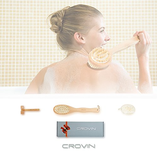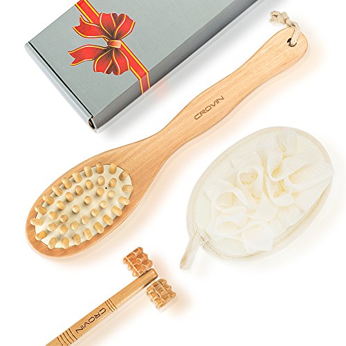 Bath Blossom Bamboo Dry Body Brush for Back Scrubber - 100% Natural Bristles Shower Brush with Long Handle - Exfoliating Scrub Skin Brush - Use...
