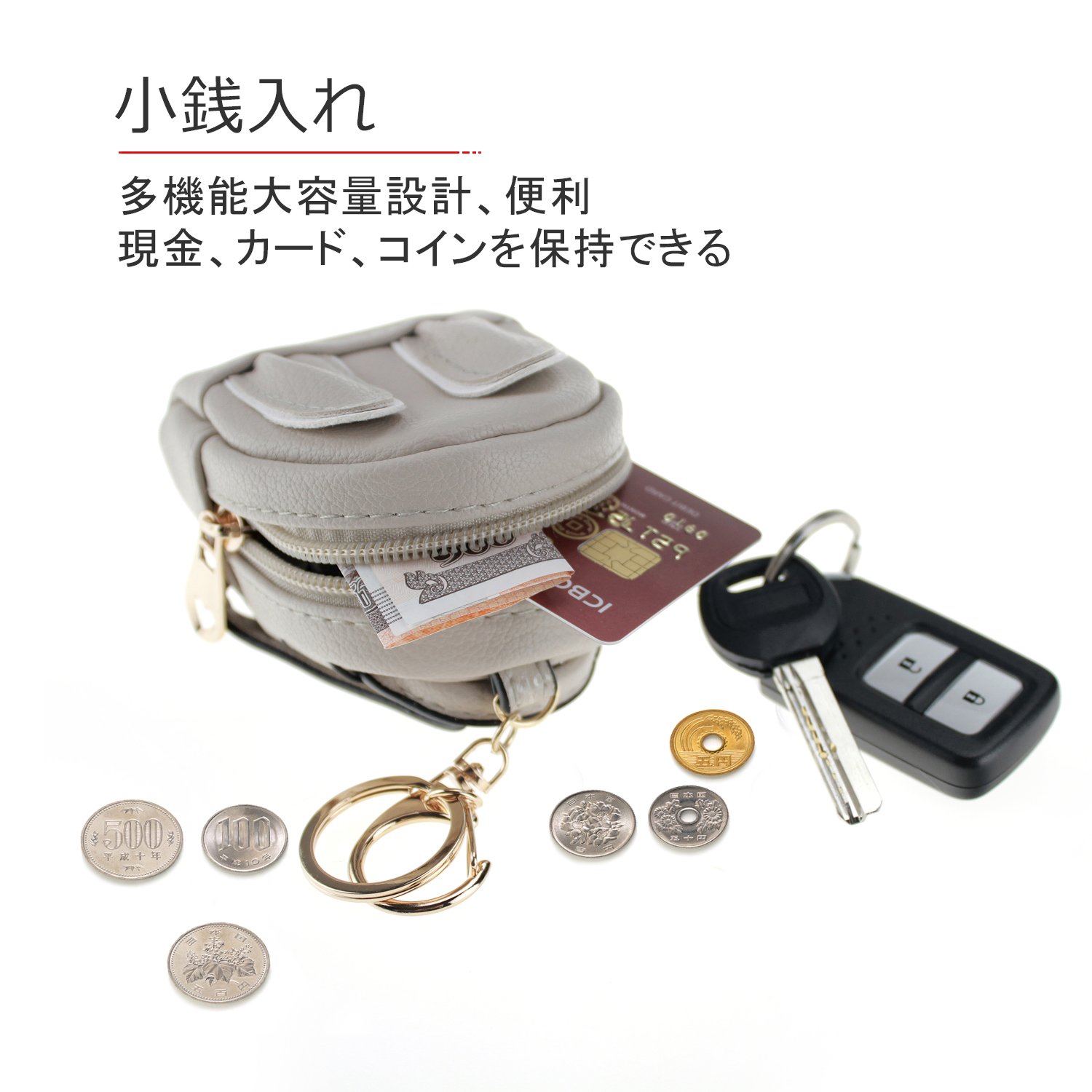 Not only as a coin case with a key ring but also as a key case.