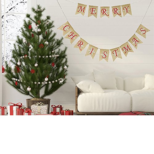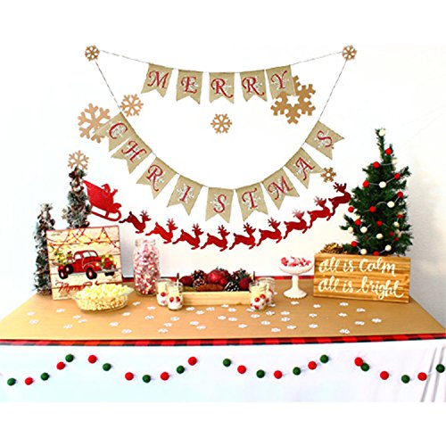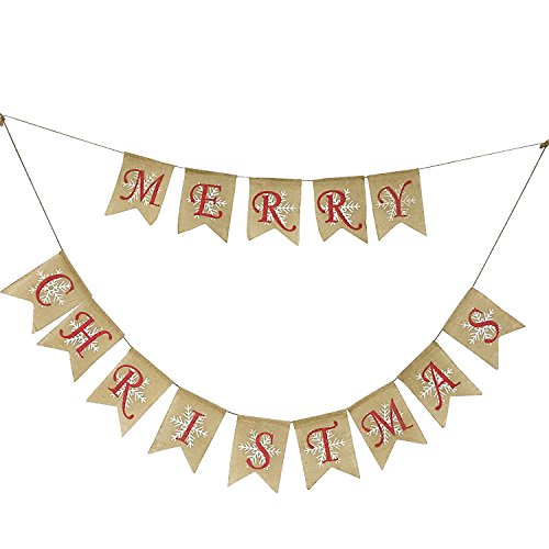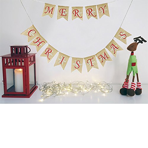 Material : Made up of Natural Burlap. Painted in RED Spelled - MERRY CHRISTMAS with Snow Flakes image on each piece,Our banner is premium quality and can be reused .