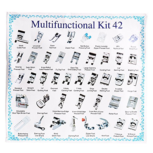 -. Feature : Suitable for most of household multi-functional sewing machines with a low shank, such as Singer, Baby Lock, Brother, Janome, etc / Quantity: 1 set (42pcs) / Color: As the picture shows / Package Weight: Approx.400g / Case size(L*W*H): Approx.240*250*30 mm/9.45"*9.84"*1.18"