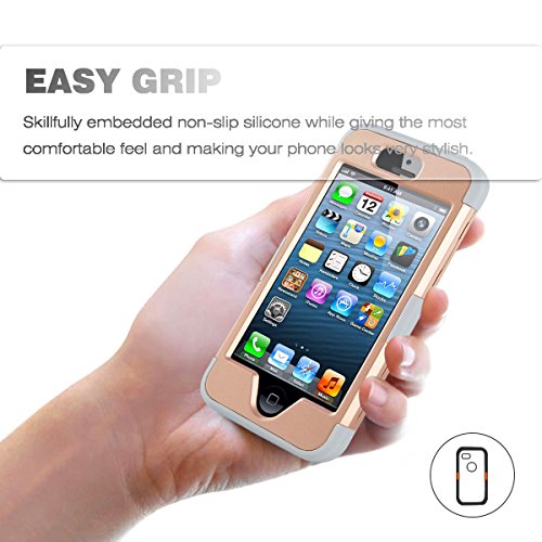 iPhone 5s Case,iPhone 5 Case,iDoer Shockproof Protective Cover Armor Hybrid Bumper Triple Layer Combo Design Case for Apple iPhone SE/5/5S Gold Grey