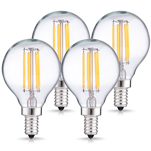 DORESshop LED Candelabra Globe Light Bulbs, Dimmable LED Filament Bulb, 4W (40W Equivalent), Daylight White 4000K, 400LM, E12 Small Base, Globe Light Bulbs for Decorative Home Lighting (4-Pack)