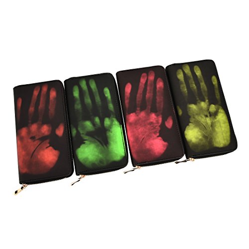 -. Feature : Product Dimensions: 7.61 x 3.51 x 0.98 inches / Made of heat sensor leather ,Temperature contact will be sensitive to color change. / Characteristic: 2017 New design, simple but special with Thermal Sensor, color changed by temperature. Onece your hand touch the purse, it will change color (green/orange/rose/yellow). / Capacity: 8 credit card slots, 1 zipper coin pocket, 2 side bill pockets, 3 full length compartment in the middle (suit for your cell phone, passport and some cash). / All have temperature of the items can be P.R.Inted out pattern, such as: hand, hot water, sunshine etc. The higher the hand temperature the more clear the pattern. When the temperature is dispersed, the pattern will slowly disappear, if you want to quickly remove the pattern, you can use a little cold water to wipe. Are you want to have this magical purse? More exciting patterns waiting for you to create.
