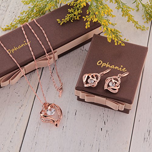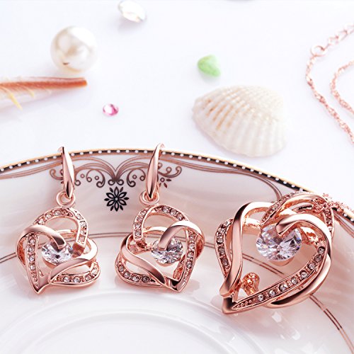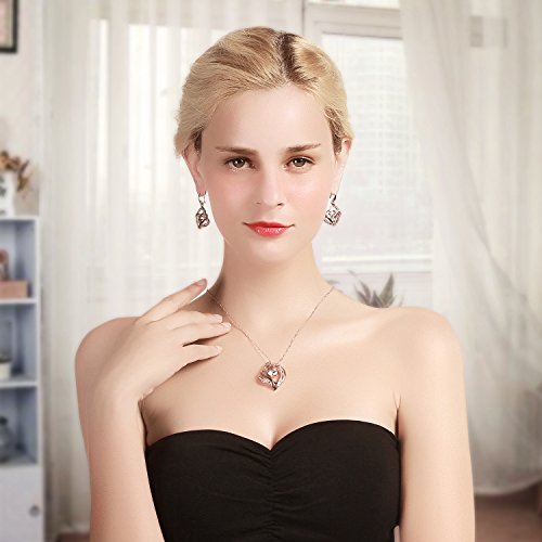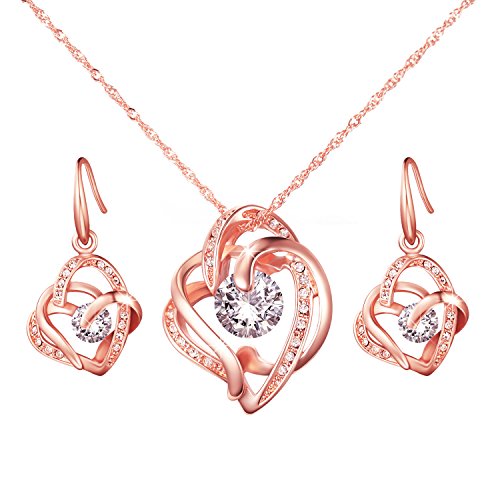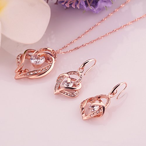 【 Certification & Material & Size 】Made of environmental-friendly material, marked with 18KRGP, Lead-Free & Nickel-Free, passes National ROHS Inspection Standard, NO RISK TO HEALTH. Material : alloy & cubic zirconia, rose gold plated. Necklace Chain length: 17.72+1.97", pendant size: 1.38 x 1.10", weight 0.49 ounces. Earrings size: 1.54 x 0.83", weight 0.32 ounces.