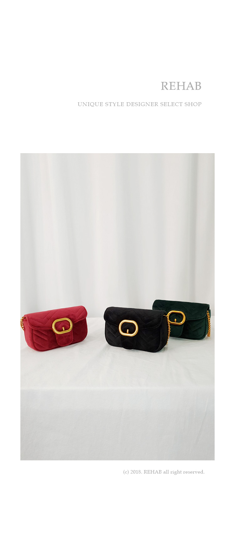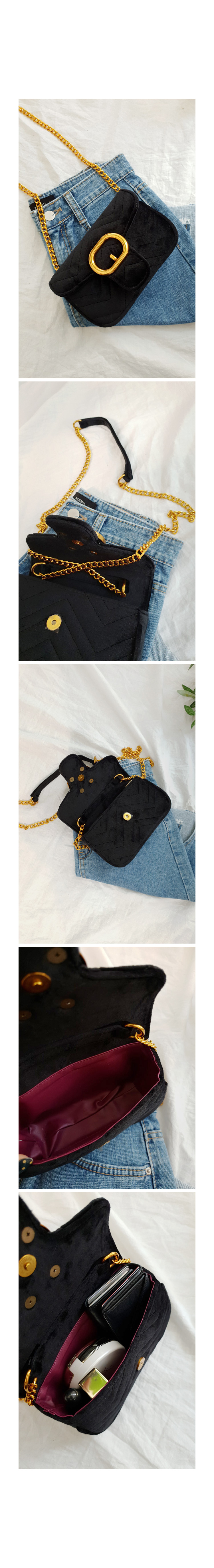 ベルベットとゴールドのプレッティングがスタイルを完成したクロスバック#ベルベットのキルティングスタイルのチェーンバック寒い日に素材の特別さがより引き立つベルベトのガバンで
