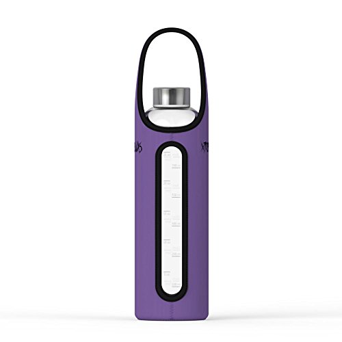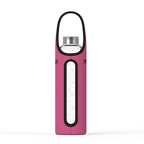 Start your journey to healthier living with this all new Hydrate Maxx 32 ounce glass water bottle by Xtremeglas! This leak proof bottle is made with durable soda lime glass, same as what canning jars and Coke bottles are made with. The bottle features ounce and milliliter markings on one side and time markings on the other side to help keep your hydration on track. Simply fill up the bottle, and drink it down by noon. Then fill it again, and drink down by 6 pm and you have drank your recommended 64 oz of daily water intake.