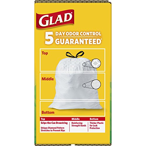 TALL GARBAGE BAG: Prevent rips and tears with Glad's unique design allowing bag to stretch at top while reinforced bands through middle contain bulk