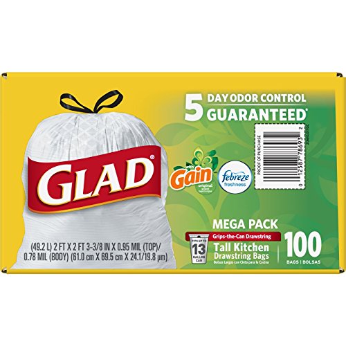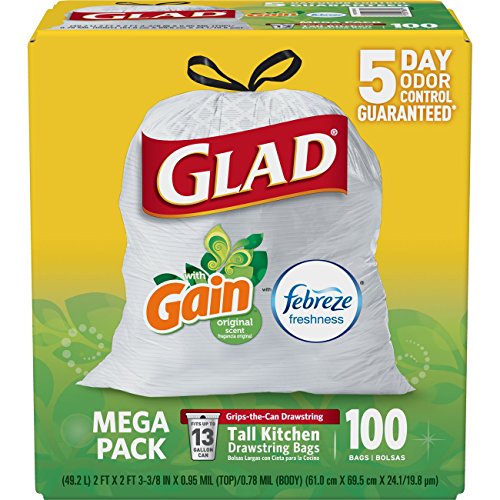 Glad OdorShield Tall Kitchen Drawstring Trash Bags - Gain Original with Febreze Freshness - 13 Gallon - 100 Count