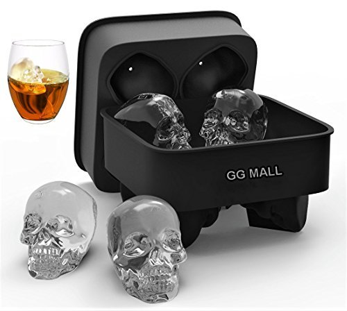 -. Title : GG Mall 3dスカルシリコンアイスキューブ金型トレイ、BPAフリー、Makes 4つVivid Skulls、アイスキューブボールメーカー、ブラック