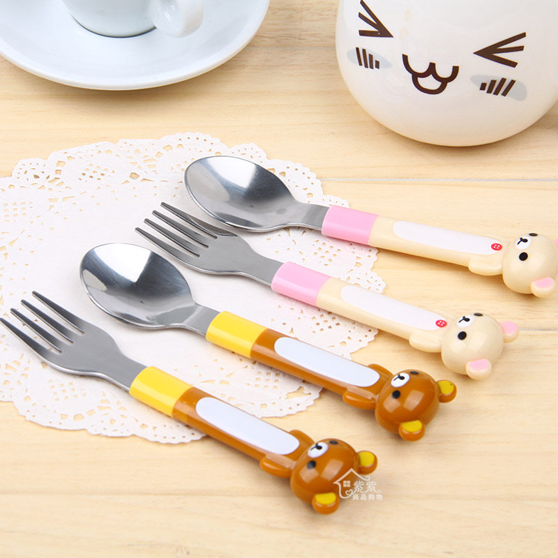 Easy three-dimensional cartoon bear cartoon portable plastic handle stainless steel cutlery spoon fork