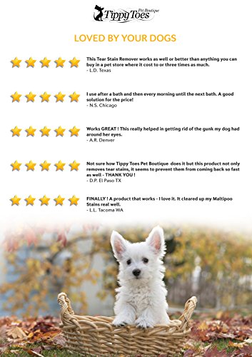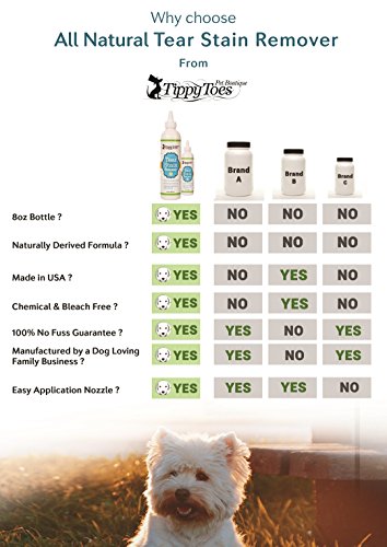 -. Binding : Misc. -. Brand : Tippy Toes Pet Boutique -. EAN : 0646437269339 -. Feature : ✅ PREMIUM INGREDIENTS work super effectively which means that our NATURAL FORMULA is perfect to keep the face clean between grooming appointments. Works particularly well on Maltese, Chihuahua and Shih Tzu. / ✅SO GENTLE THAT DAILY CLEANING is fine which means you can keep on top of the goop and help prevents the build-up of long term staining. Daily use is a great prevention. / ✅ KIND AND GENTLE to eyes which means that there shouldn't be a strle as you go to work with our non-irritating formula particularly if they suffer with any allergy. / ✅ OUR NATURAL FORMULA IS EASY AND SIMPLE TO APPLY which means that there shouldn't be a strle with stinging eyes and your pet may even love you for massaging his face ! / ✅ I PERSONALLY PROMISE that if you or your dog doesn't ❤️ our product, you can contact me via Amazon and I'll put it right. Katie G Co Owner at Tippy Toes Pet Boutique -. Label : Tippy Toes Pet Boutique -. Manufacturer : Tippy Toes Pet Boutique -. PackageQuantity : 1 -. ProductGroup : Pet Products -. ProductTypeName : PET_SUPPLIES -. Publisher : Tippy Toes Pet Boutique -. Studio : Tippy Toes Pet Boutique -. Title : Tear Stain Remover for Dogs - Natural and Gentle on White Fur Our Premium Quality Treatment Cleans your Dogs Tears and Remove Eye Build Up Stains and Crust. For All Breeds And Sizes. Proudly USA Made -. UPC : 646437269339