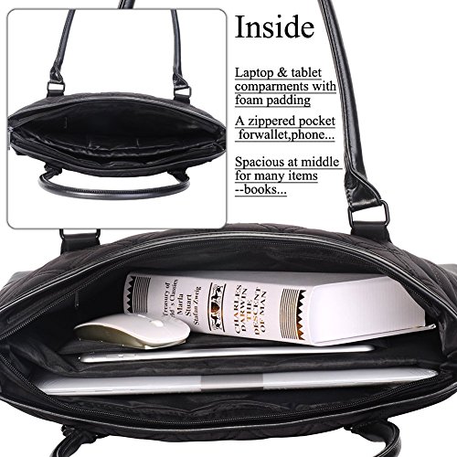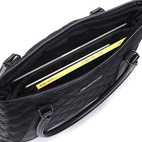 -. Feature : This laptop tote bag is designed with diamond pattern, very attractive,lightweight,spacious and practical on buisness or travel. / The laptop compartment and tablet pocket with thick soft foam padding provides extra protection,that effectively absorbs accidental bumps, reduces damages caused by impacts, and protects your computer from scratches. / Dual sturdy long PU leather handles for long-time comfortably carrying by hand or shoulder. / At middle,it is roomy for books,wallet mouse,adapter etc. Zipper pull enable easy and quick access to the laptop or accessories inside. / Size: 44CM x 32CM x 7CM(17.3x12.6x2.8inch).Fits most up to 15.6 inch Laptop / Notebooks / MacBook / Ultrabook /Chromebook ( Apple Macbook / Acer / Asus / Dell / Fujitsu / Lenovo / HP / Samsung / Sony / Toshiba etc.).may not snugly fit all computers due to variations in the sizes of different models